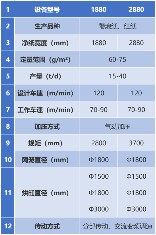 系列鞭炮紙機技術(shù)參數說(shuō)明: